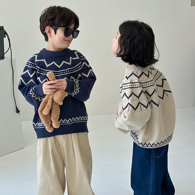 ベビー キッズ ニット セーター トップス ラウンドネック 長袖 オーバーサイズ ナチュラル ユニセックス 子ども服 男の子 女の子 ベージュ ネイビー 90 100 110 120 130 140 150cm