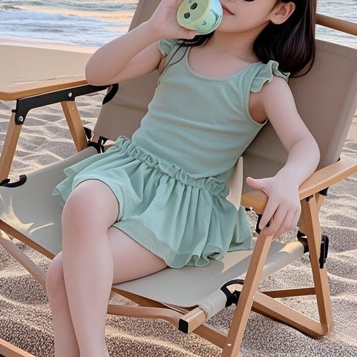 女の子らしいフェミニンなデザインで、夏の水遊びがもっと楽しくなる1枚です。