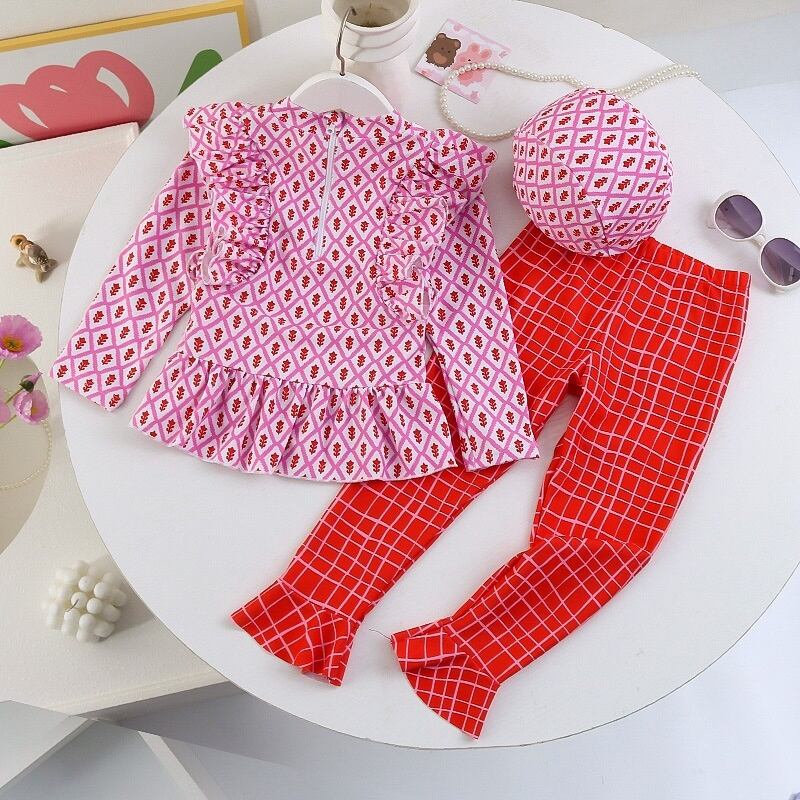 女の子らしさたっぷりの長袖ラッシュガード付きセパレート水着です。