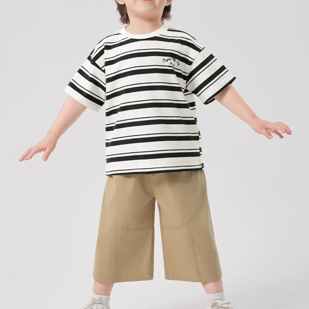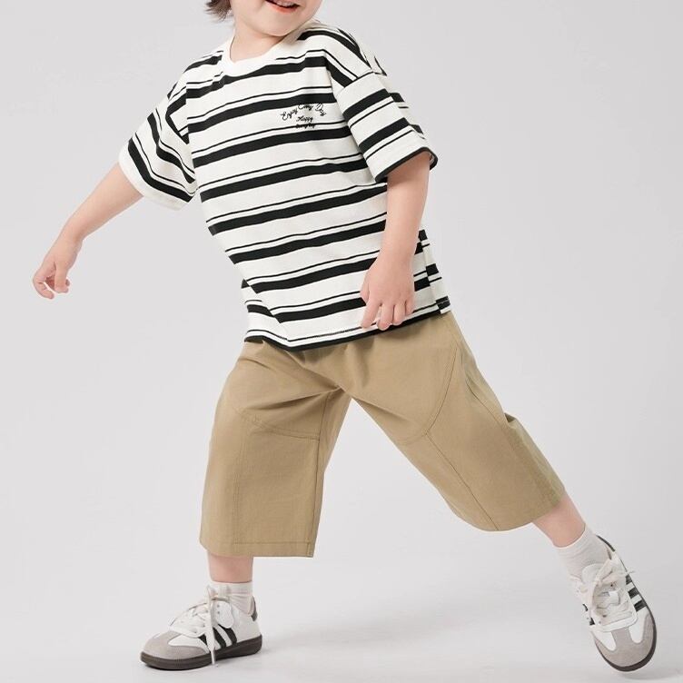通気性がよく、汗をかいてもさらっと快適。動きやすいデザインで毎日の遊び着にぴったり!