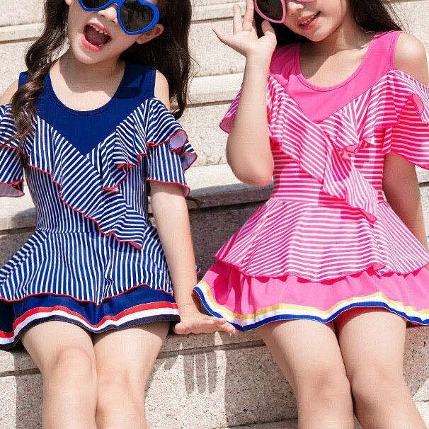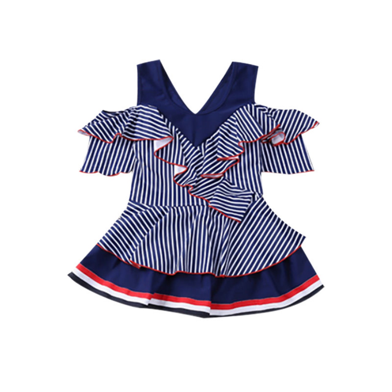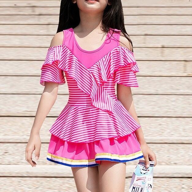 ベビー・キッズ用の半袖オフショルダー水着ワンピース☆