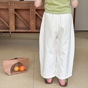 男の子にも女の子にも似合う、ナチュラルカラーのユニセックスワイドパンツが登場です♪