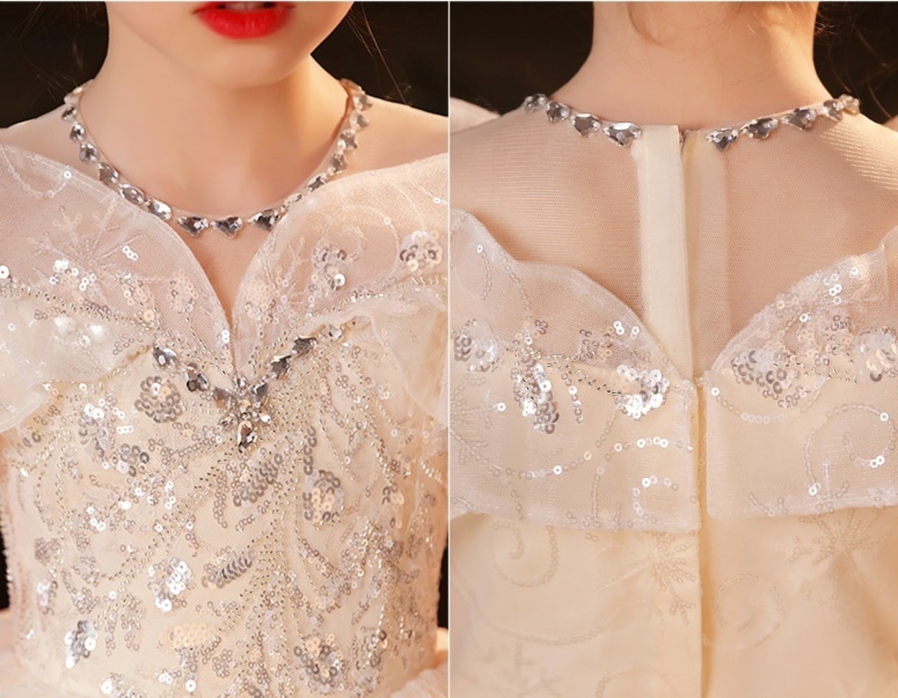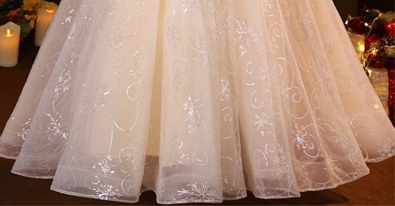 スパンコールがキラキラと光って、どの角度から見ても華やかさたっぷり!