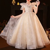 華やかで上品♡ ふんわり可愛いシャンパンカラーのキッズドレス☆彡