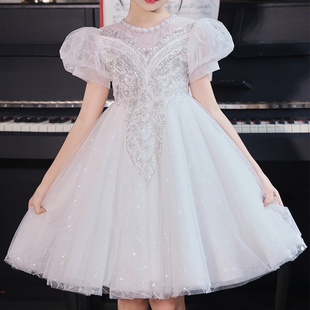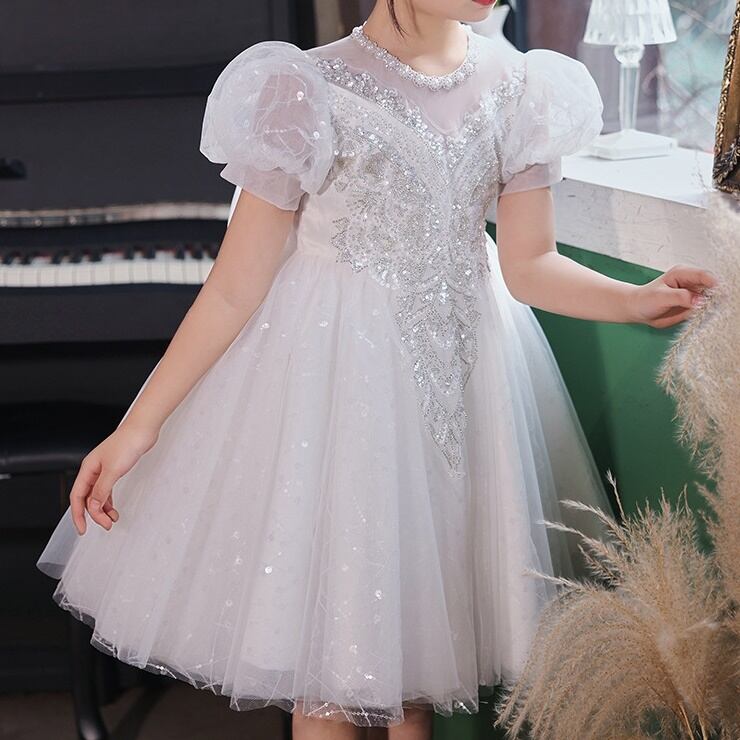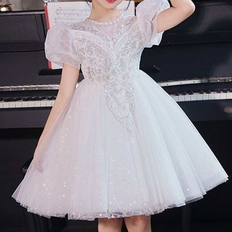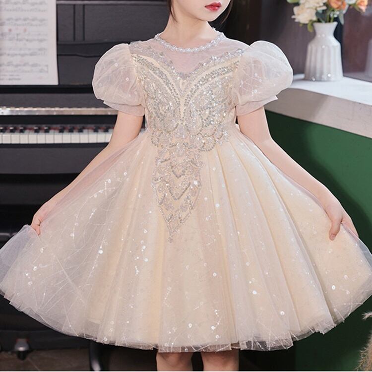 おめかししたい日にぴったり!ふんわりチュールにキラッと光るスパンコールが目を引く、女の子のためのプリンセスドレスです♪