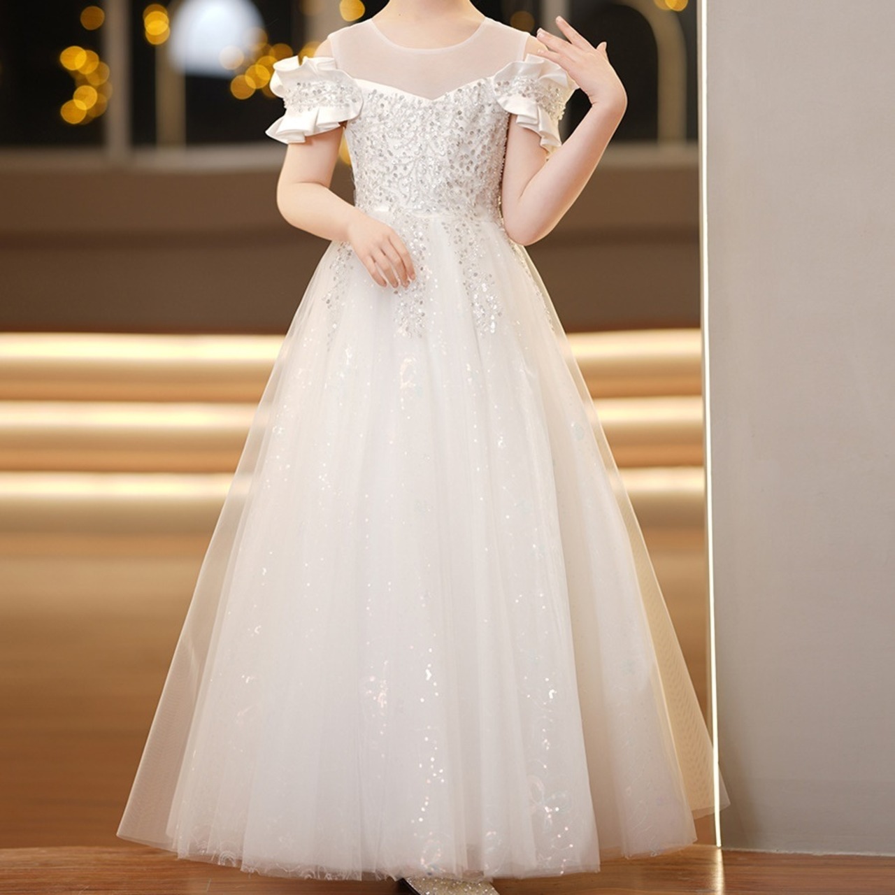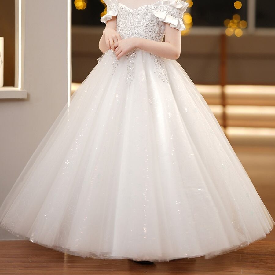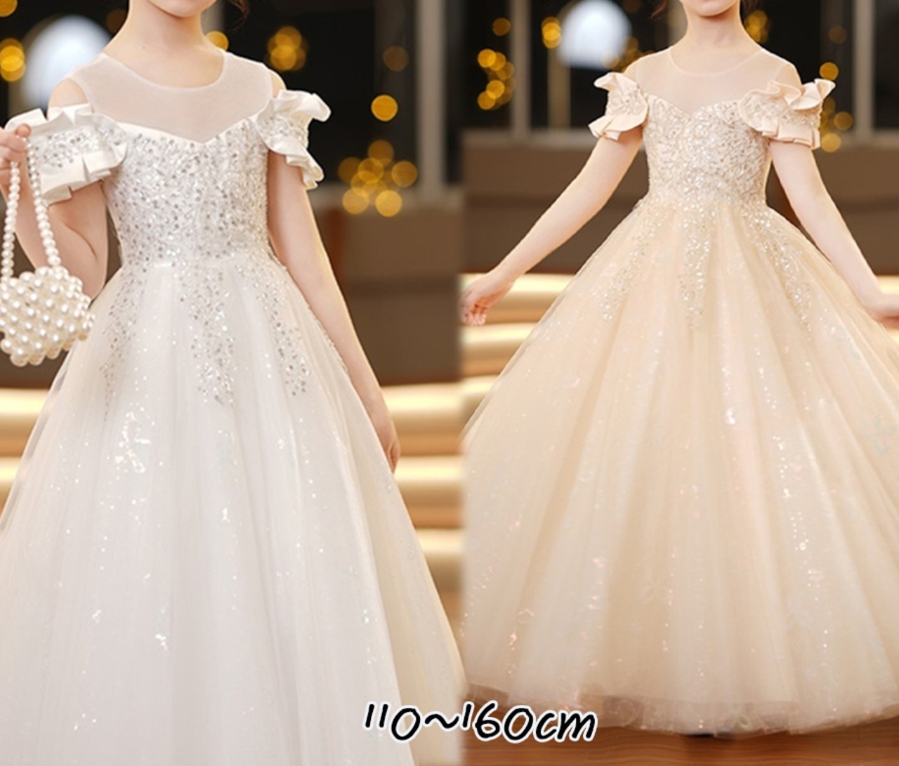 ロング丈のプリンセスドレスは、動くたびに優雅に揺れて、どこから見ても存在感たっぷり。