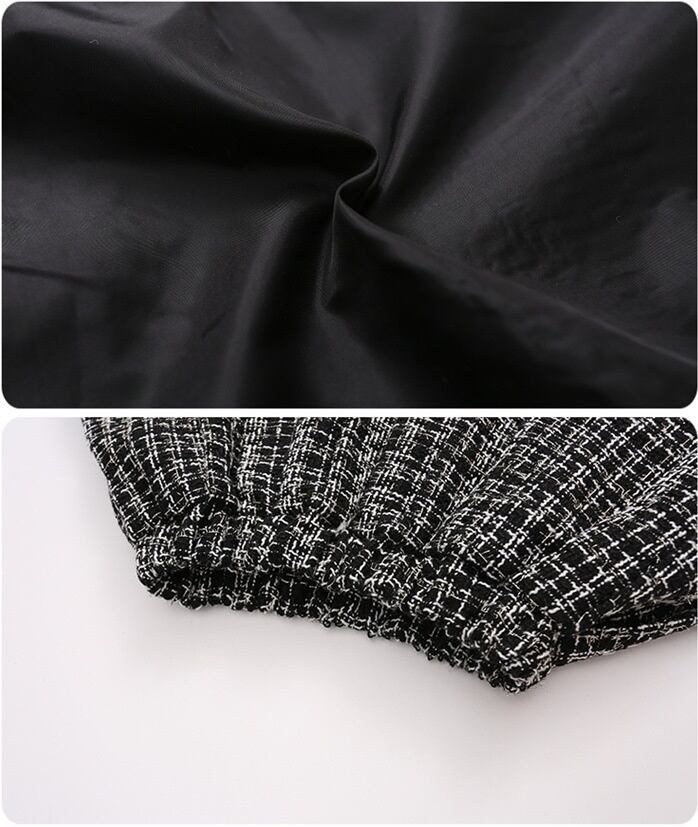 しっかりしたツイード風素材は高見えしつつ、着心地はやわらかで安心。