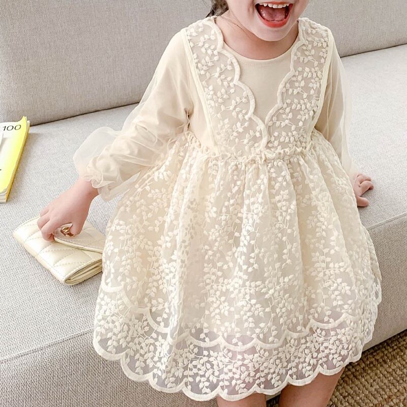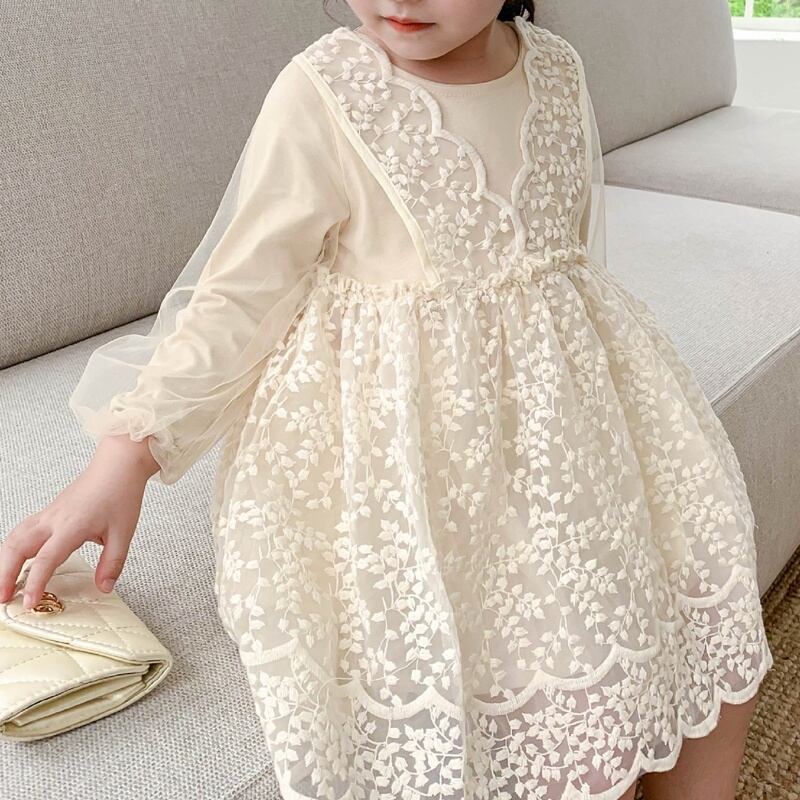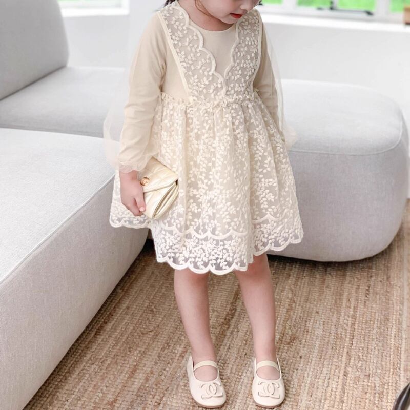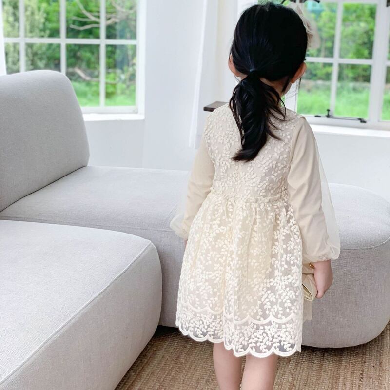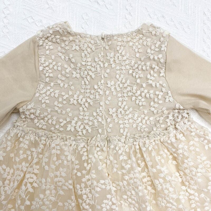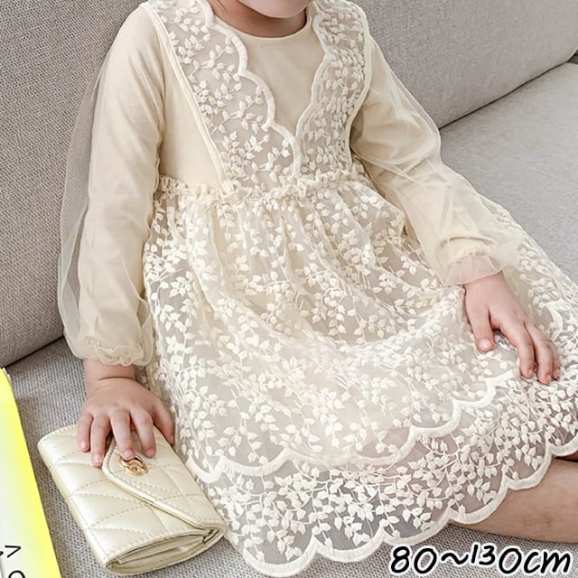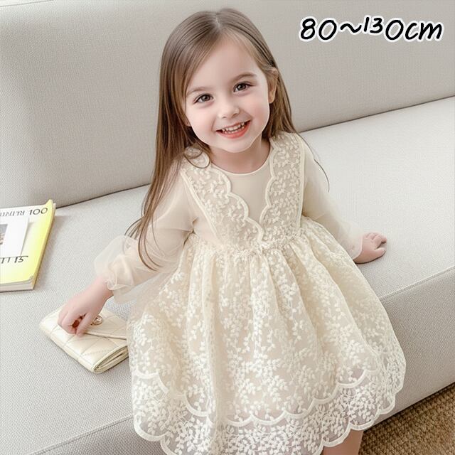レース×チュールの異素材ミックスがとっても上品で、まるで小さなフェアリーのような女の子ワンピース。