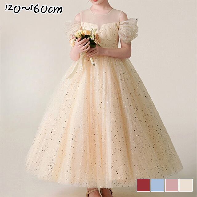 オフショルダー×ふんわりチュールが、女の子の「着たい!」をぎゅっと詰め込んだ主役級ドレス♪