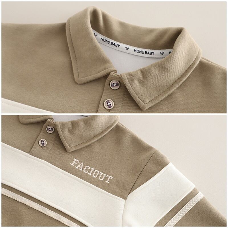 ゆるっとしたシルエットの長袖シャツは、トレンド感たっぷりのラガーデザイン。