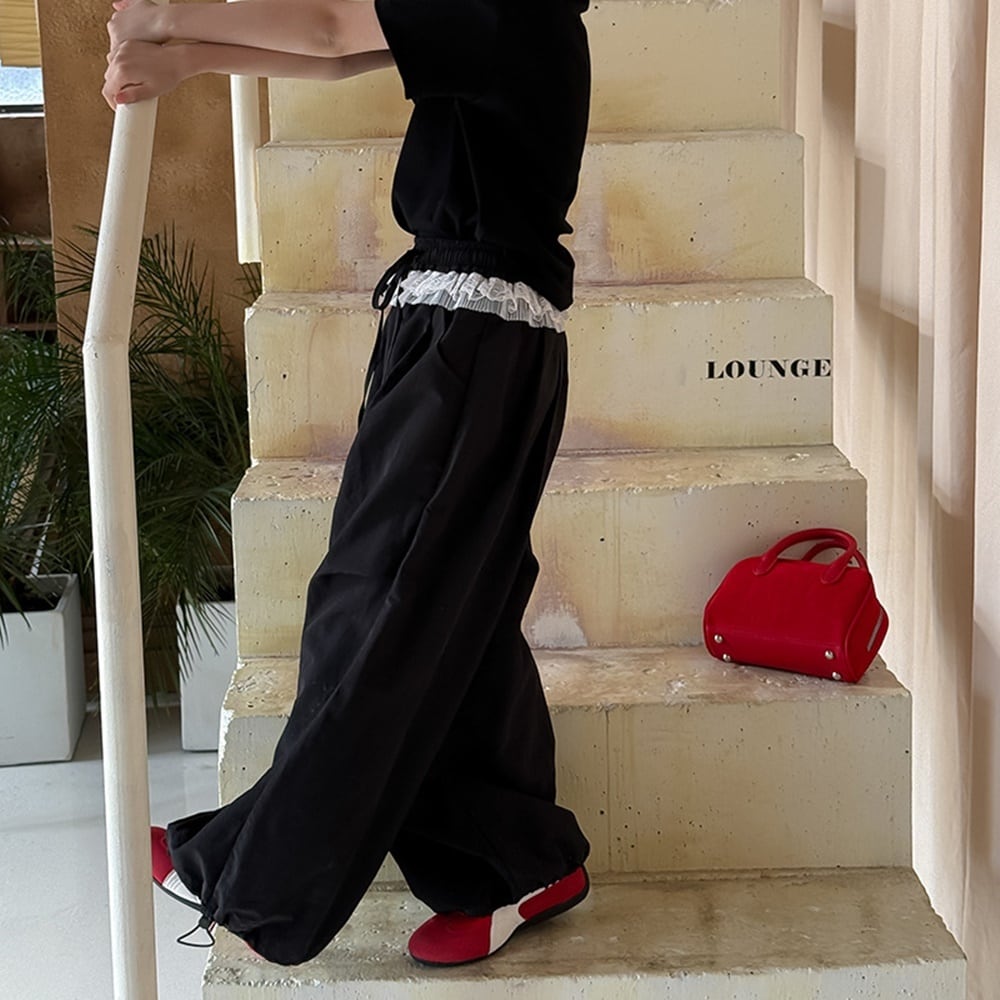 見た目はストリートっぽくクールなのに、ウエストは総ゴム仕様で動きやすさ◎。