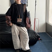 1枚で重ね着風スタイルが完成するから、朝の準備も時短に。