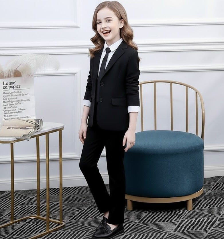 フォーマルながらもスタイリッシュで、かっこいいコーディネートを楽しみたい女の子にぴったりです。