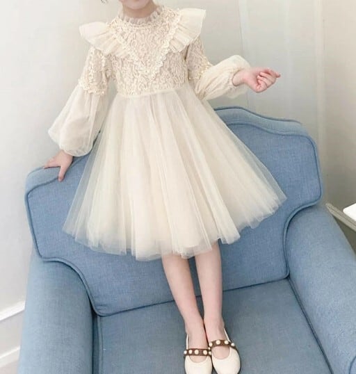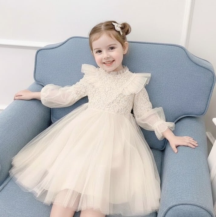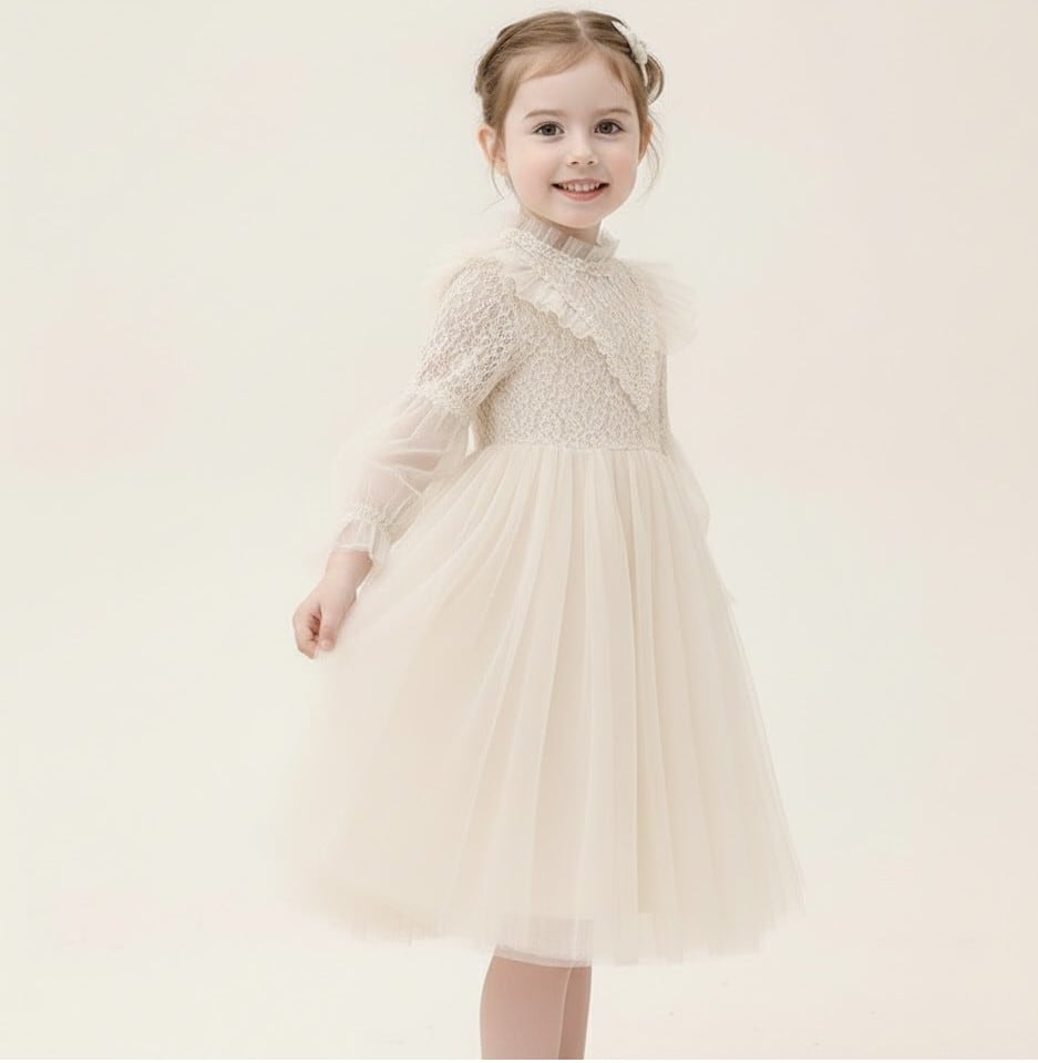 女の子の可愛らしさを引き立てる、チュールワンピースの登場です!パフスリーブがフェミニンな印象を与え、特別なシーンにぴったりな一着です☆