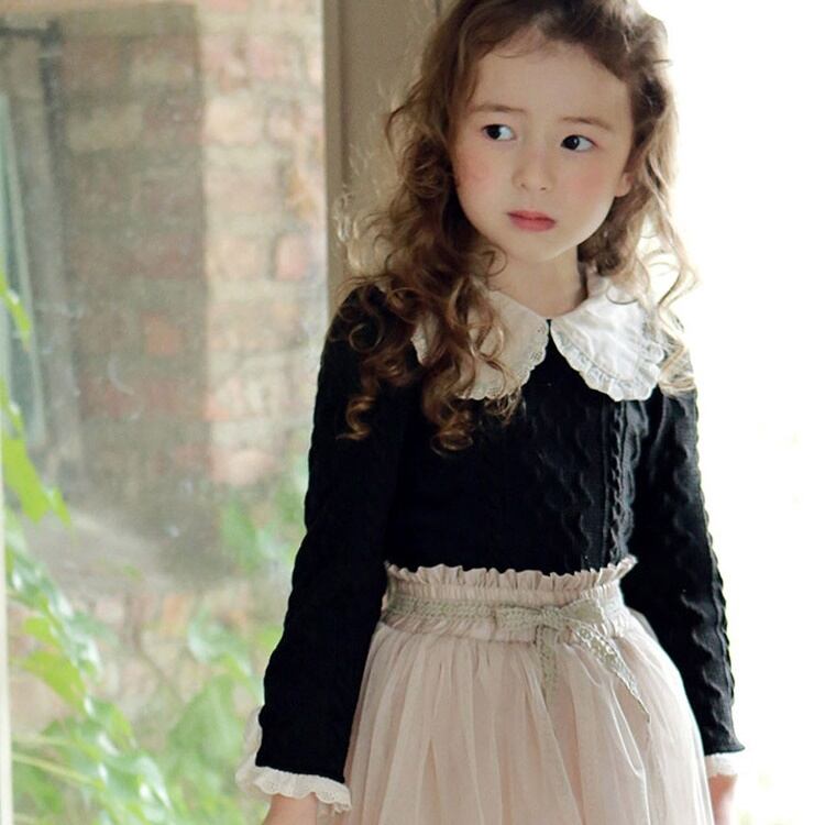 フェミニン&ナチュラル☆彡 キッズ向けビッグカラーフリルニットトップス♪