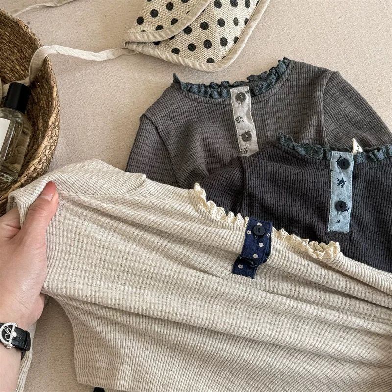 【ナチュラルガーリーな定番♪ リブフリルカットソー】