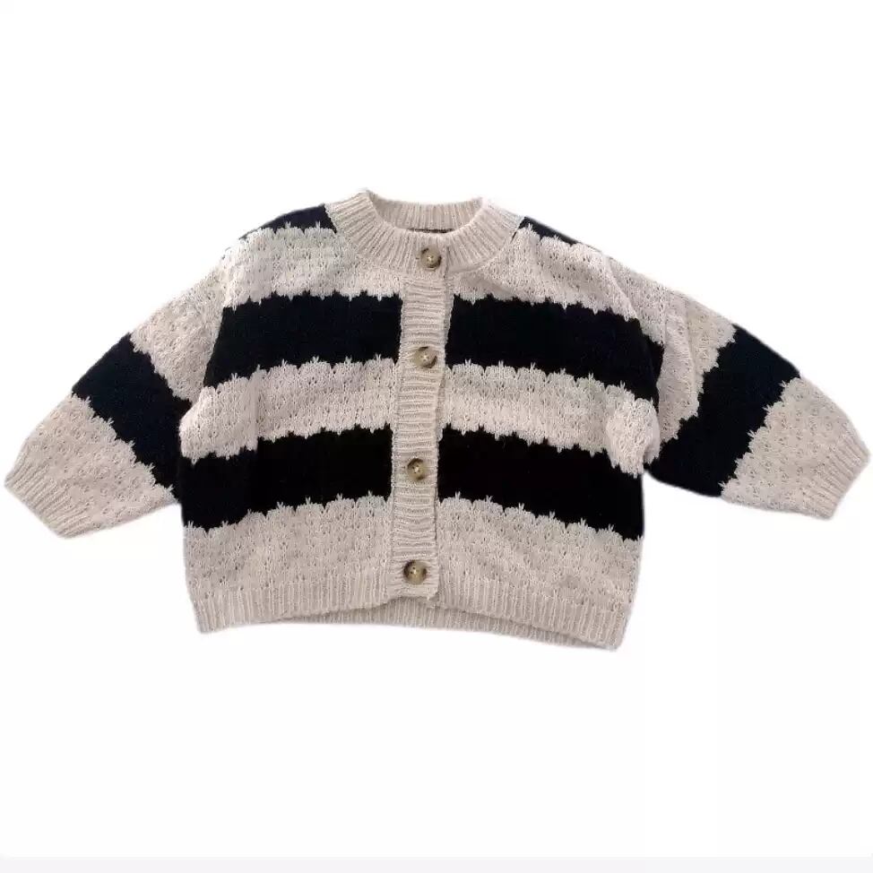 ナチュラルな雰囲気がかわいい、ボーダーニットカーディガンです。