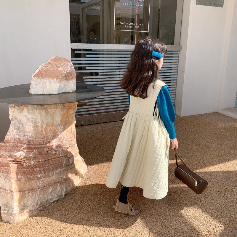 ふんわりとしたキルティング素材がやさしい印象のガーリーワンピース。