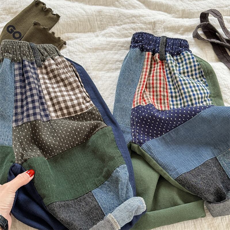 ナチュラルテイストでおしゃれなビッグシルエットパッチワークパンツ。